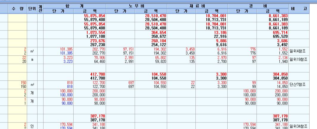 내역서 작업을 끝내고작업모드 - 설계변경을 눌러서설계변경으로 넘어왔을 때 아무런 수정을 하지 않았는데도당초와 변경 금액이 다르게 나오는 경우가 있습니다.  ↑ 내가 수정한 것도 아닌