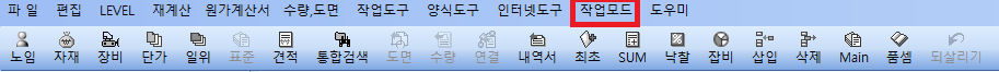 1. 프로그램 상단에 "작업모드"를 눌러주세요.