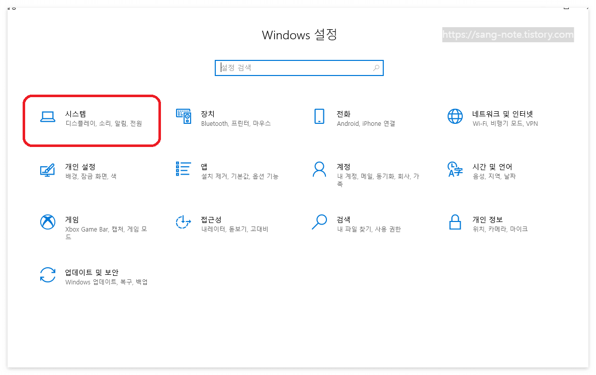 2) 시스템을 누릅니다.(아래 사진 빨간색 표시)