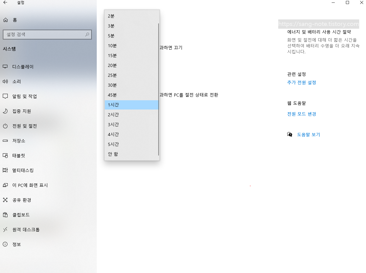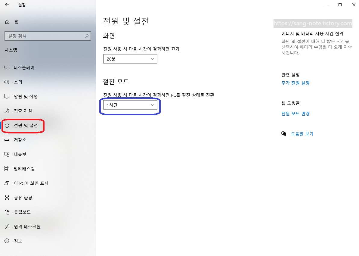 2. 전원 및 절전 설정 모드 변경