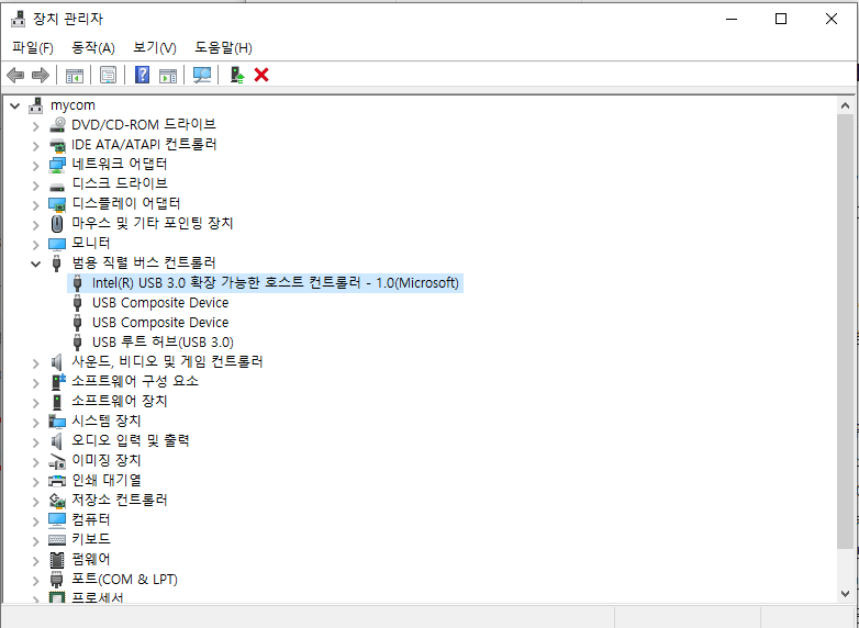 2) '범용 직렬 버스 컨트롤러'를 찾아서 눌러주세요.