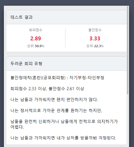 성인애착유형 검사 링크 올려드릴게요 ↓↓