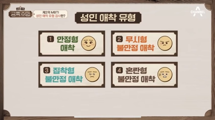 이렇게 성인애착유형 네가지를 살펴봤는데요.