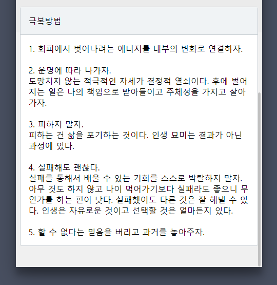 각자 자기유형이 어떤지 살펴보고 극복방법도 알아보면 좋을 것 같아요!