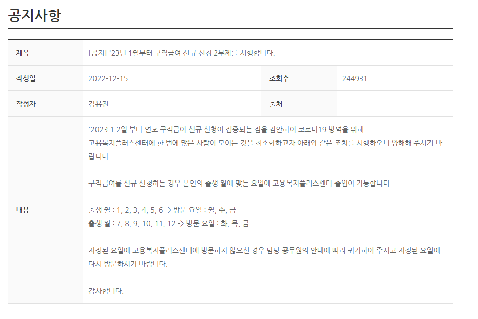 고용센터에서 2023년부터 신청 2부제를 시행한다고 합니다.