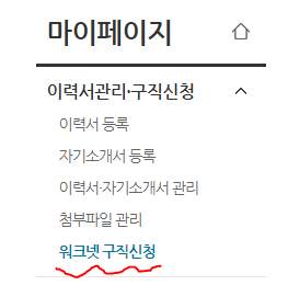 그리고 마이페이지에서 워크넷 구직신청을 눌러 구직신청해주시면 됩니다.