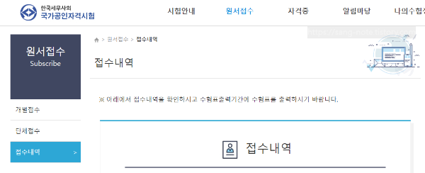 홈페이지 첫 화면에서 접수내역 바로가기를 눌러서 보셔도 되고