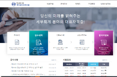 "한국세무사회 국가공인자격시험"이라고 적힌 사이트로 들어가주세요.