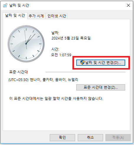 3. 날짜 및 시간 변경 버튼을 눌러줍니다.