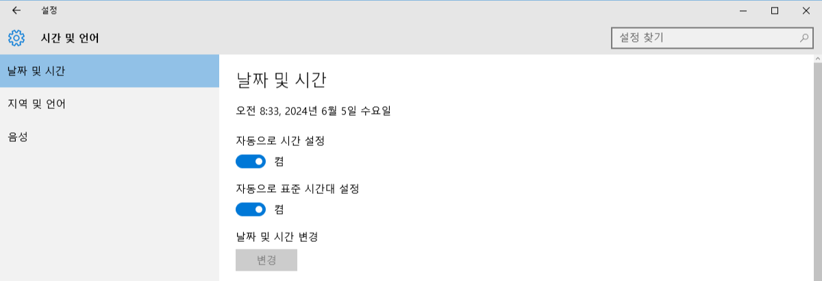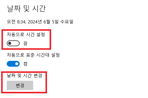 날짜 및 시간 변경 밑에