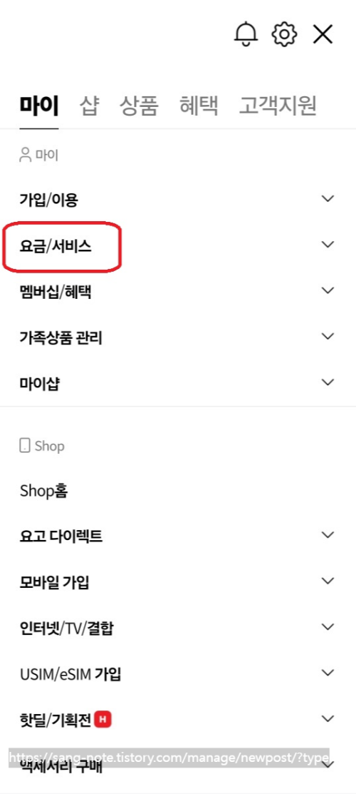 2. 요금/서비스 탭눌러주세요.