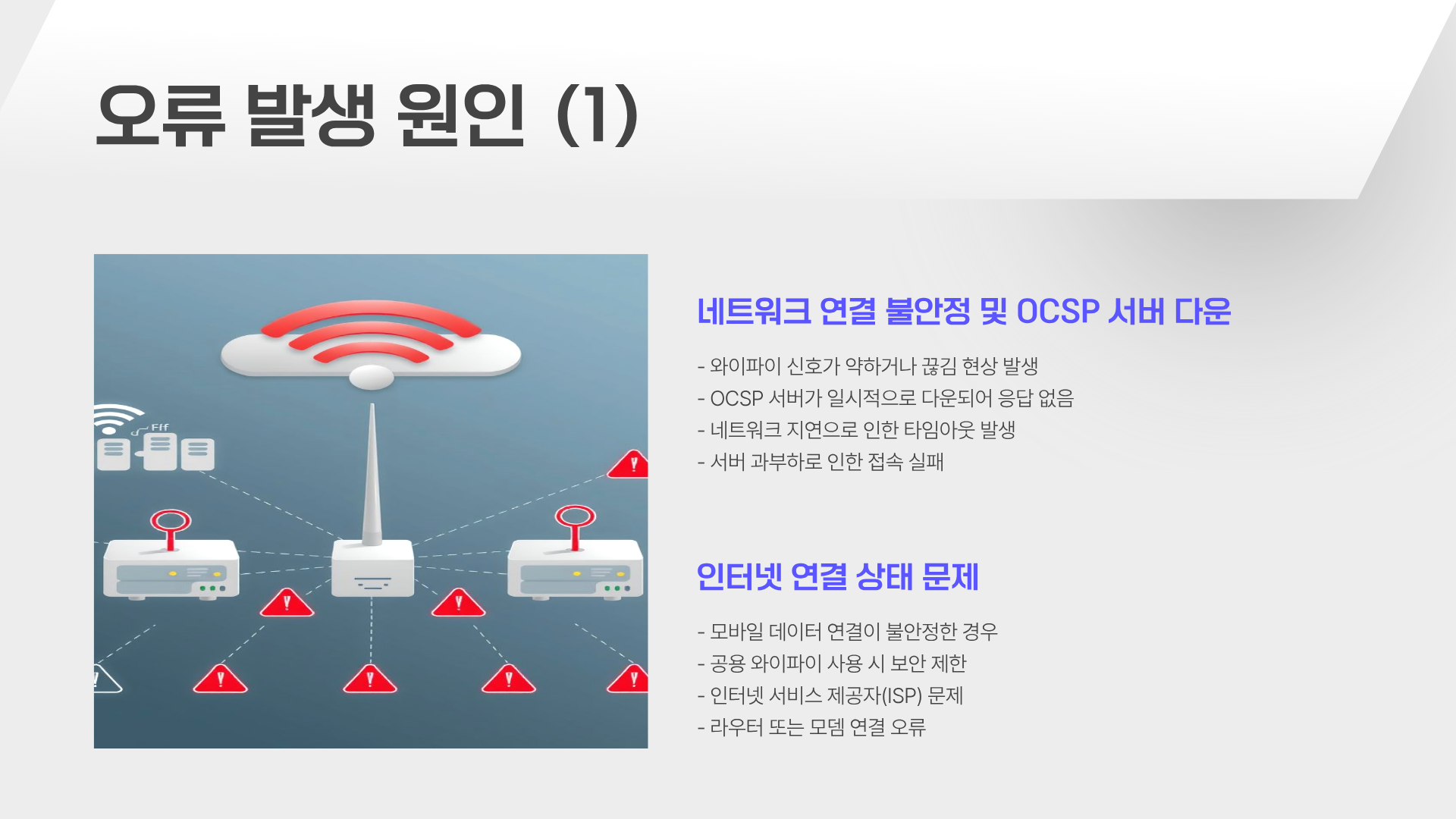 와이파이나 모바일 데이터 연결이 불안정하면 OCSP 서버 접속 자체가 차단될 수 있어요.