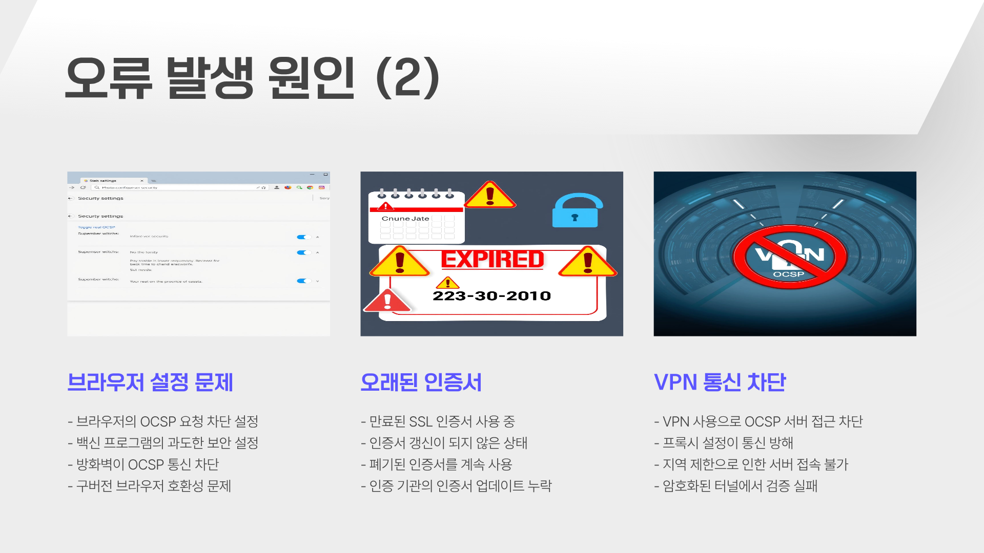 또는 'OCSP 서버 접속 오류' 같은 메시지를 본 적 있으시죠?