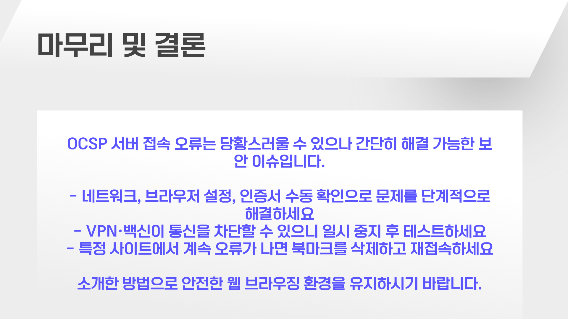 이렇게 하면 OCSP 관련 서버 접속 오류를 줄일 수 있어요.